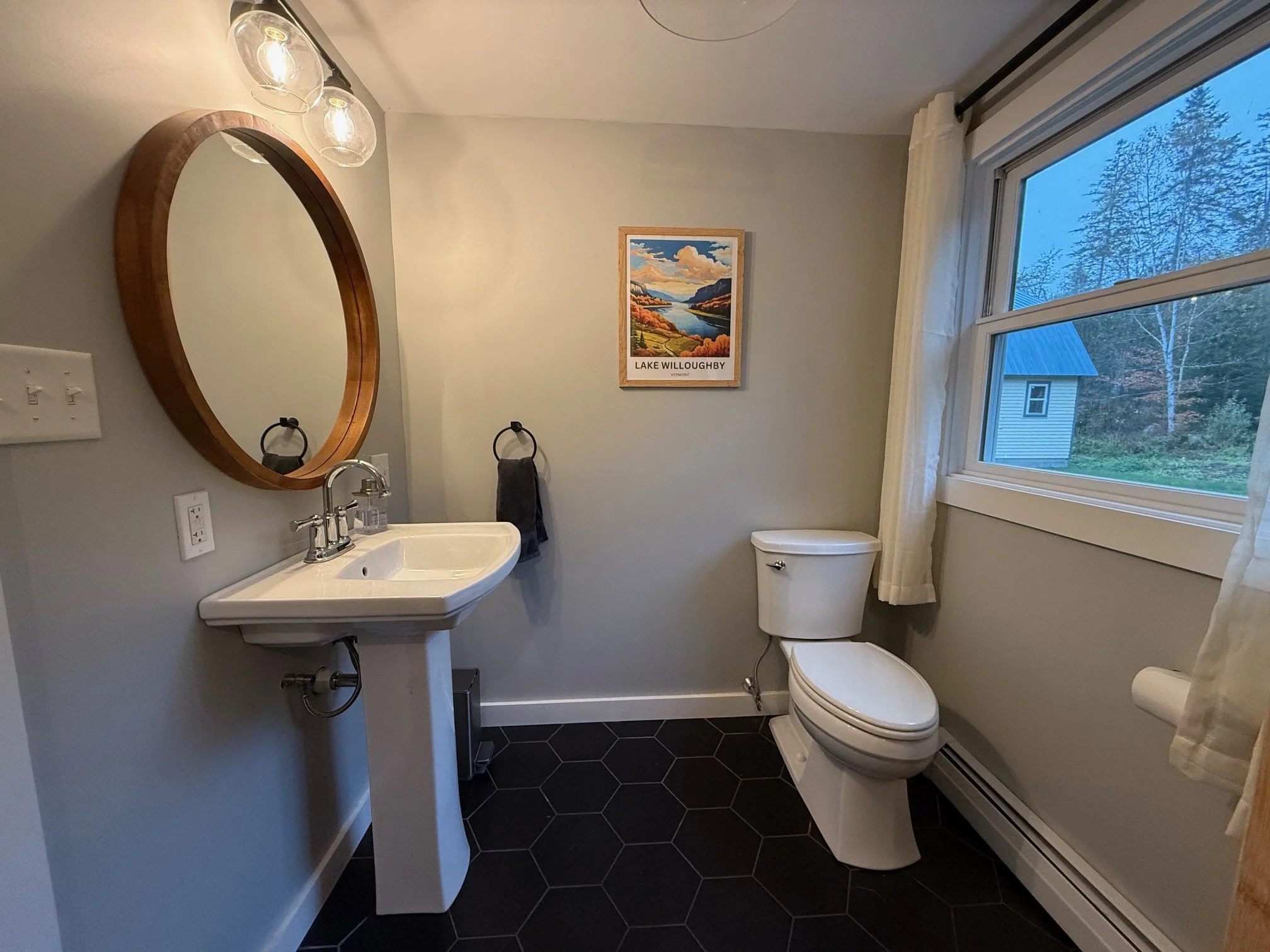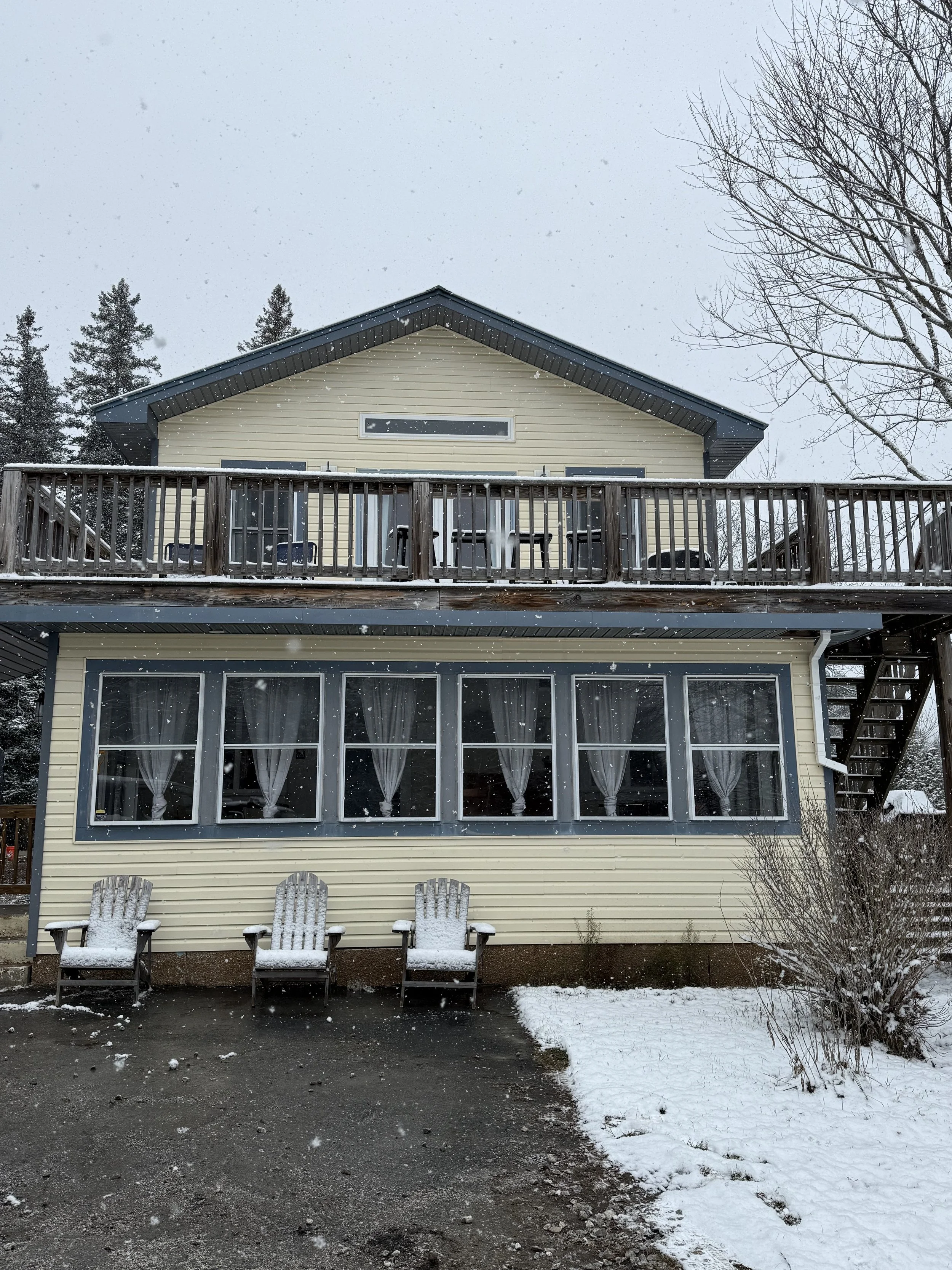Outside you’ll find a picnic table on the side deck, Adirondack chairs under the pavilion, seating on the upper deck too…lots of places to join together or take time away.