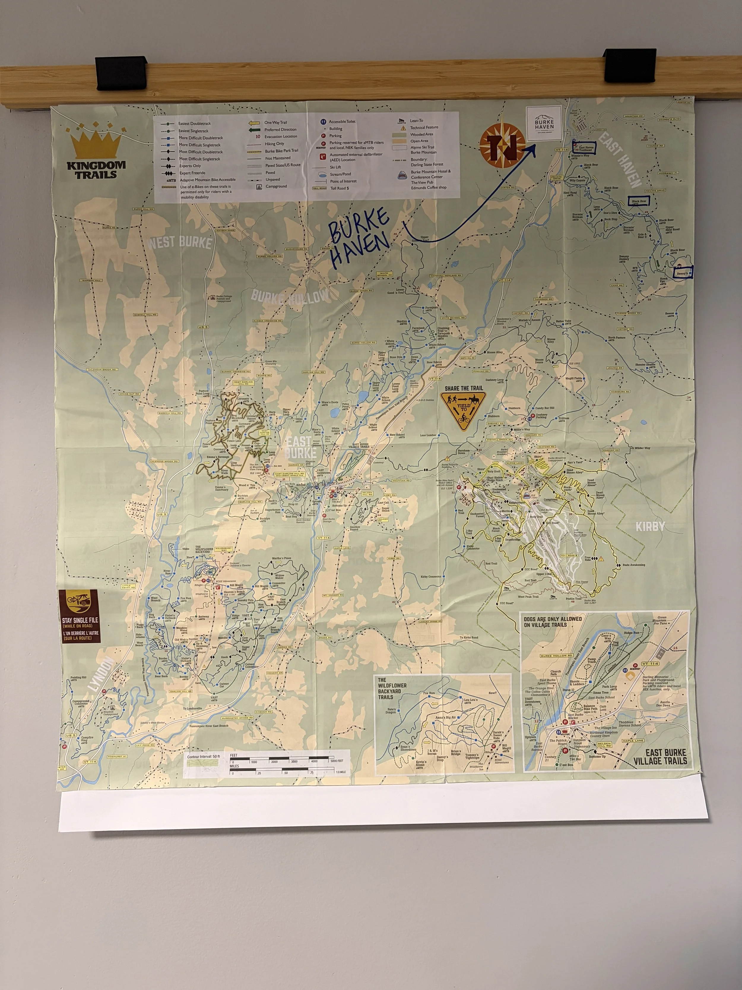 In the future we will have a station for you to…. Wash all the mud and dirt off your bikes after an epic day of riding. We recommend ending on the iconic Black Bear bike trail or the new Flying Monkeys jump trail and biking back to Burke Haven from Moose Haven KT trailhead.