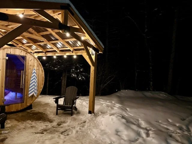 Rest after a soak and steam at the fire pit, propane for easy use.